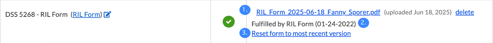 | Current functionality | Previously, when a requirement's configuration was changed (e.g., a fillable form was replaced with a supporting document upload, an updated form version is available), any previously completed versions would move to the Other/Miscellaneous section. Workers then had the option to manually locate and re-upload documents to fulfill the new requirement. |