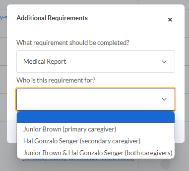 If it's a document caregivers need to upload, staff can assign it to the primary caregiver or both the primary and secondary caregiver.
