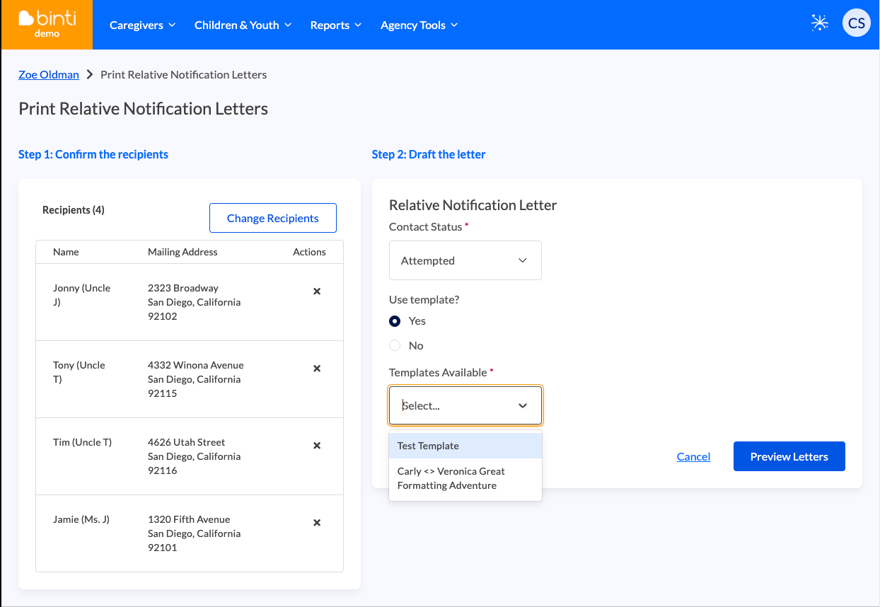 Bulk Outreach Templates allow agencies to create standardized, reusable templates for Family Finding & Engagement (FF&E) bulk outreach. Templates can be used for both emails and letters, ensuring consistent and compliant communication every time.