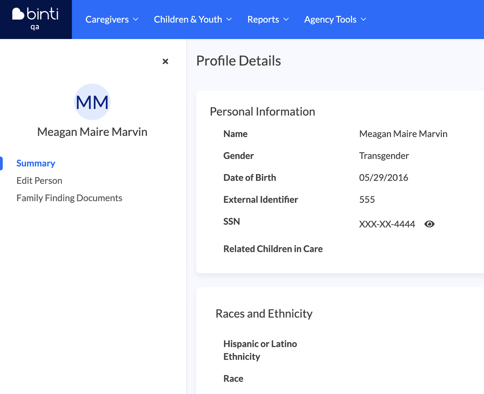 The Person Profile solves this by bringing everything together in one place, making it easier to review details, reduce duplication, and support accuracy across Licensing and Family Finding workflows.
