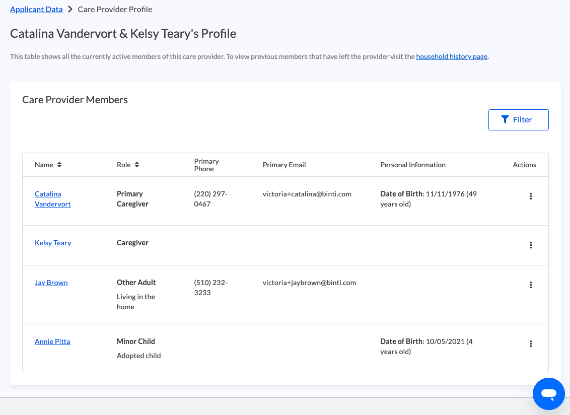 - You’ll be taken to a table listing all members of the provider household.